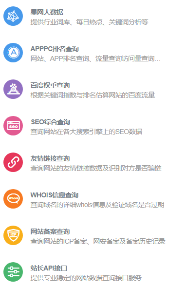 SEO数据分析:百度权重、关键词排名、收录量、反链统计、友链质量等