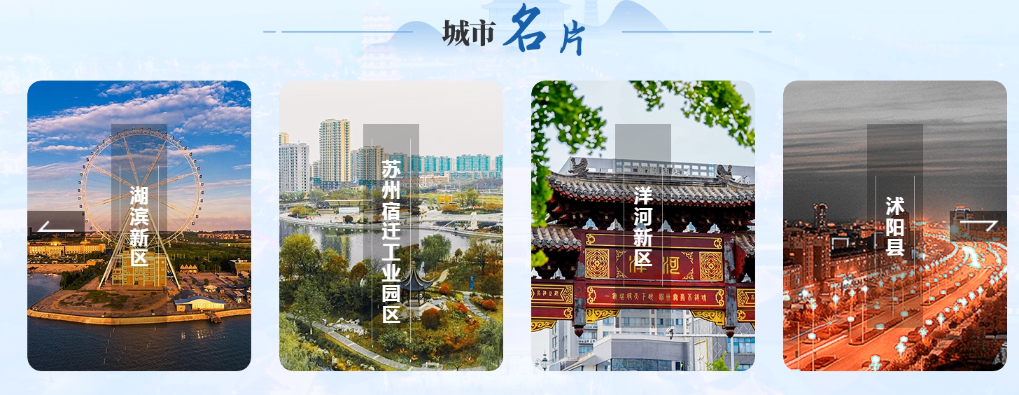 宿迁地处江苏省北部,1996年7月设立地级市。总面积8524平方公里,总人口583.66万,下辖沭阳县、泗阳县、泗洪县、宿豫区、宿城区“三县两区”和宿迁经济技术开发区、湖滨新区、苏宿工业园区、洋河新区“四个功能区”,是著名的“名酒之乡”“水产之乡”“花木之乡”和“杨树之乡”,拥有项王故里、中国酒都、水润之城“三张名片”。