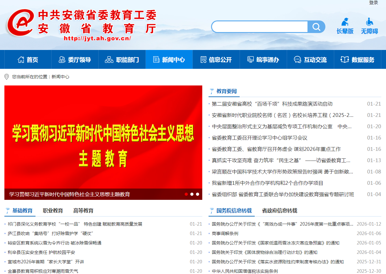 2020年5月,根据省政府网站集约化统一安排,安徽教育网整体迁移至省政府集约化平台,启用新域名(https://jyt.ah.gov.cn);